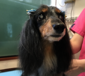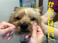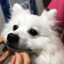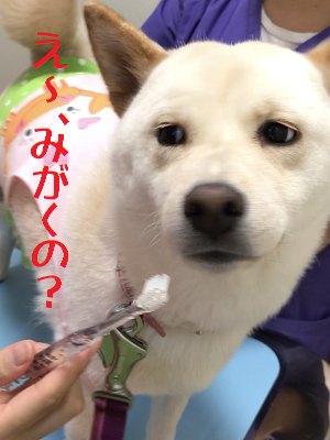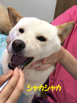 あずきちゃんはとってもシャイな女の子。待合室にもなかなか慣れてくれません。だけど、やる気はあるんです!お手して、おかわりして、くる〜んとまわって、1年かかって上手にみがけるようになりました♪