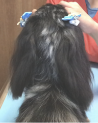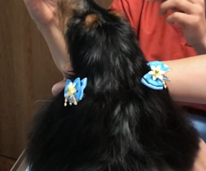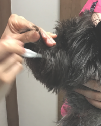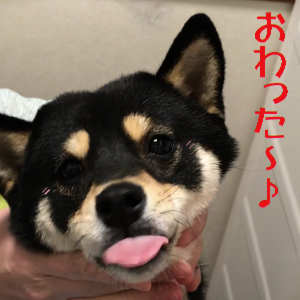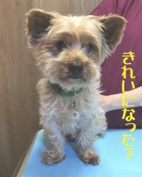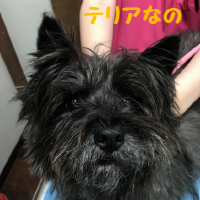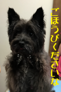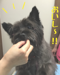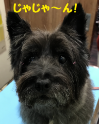 まりんちゃんもとっても歯みがき上手。でも、黒いテリアなのでお顔がハッキリ見えません。記念撮影の前に、お父さんがトリミングに連れて行ってくれました。これでかわいいお顔がハッキリ見えますよ〜♪