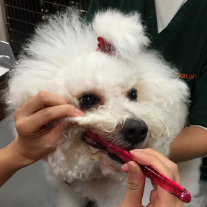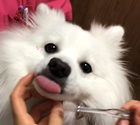 ビション・フリーゼのあんにんちゃんも、スタートから1年4カ月で300回を迎えました。あんにんちゃんは奥歯も、前歯も、歯の裏側だってしっかりみがけちゃう!すごいな〜あんにんちゃん♪